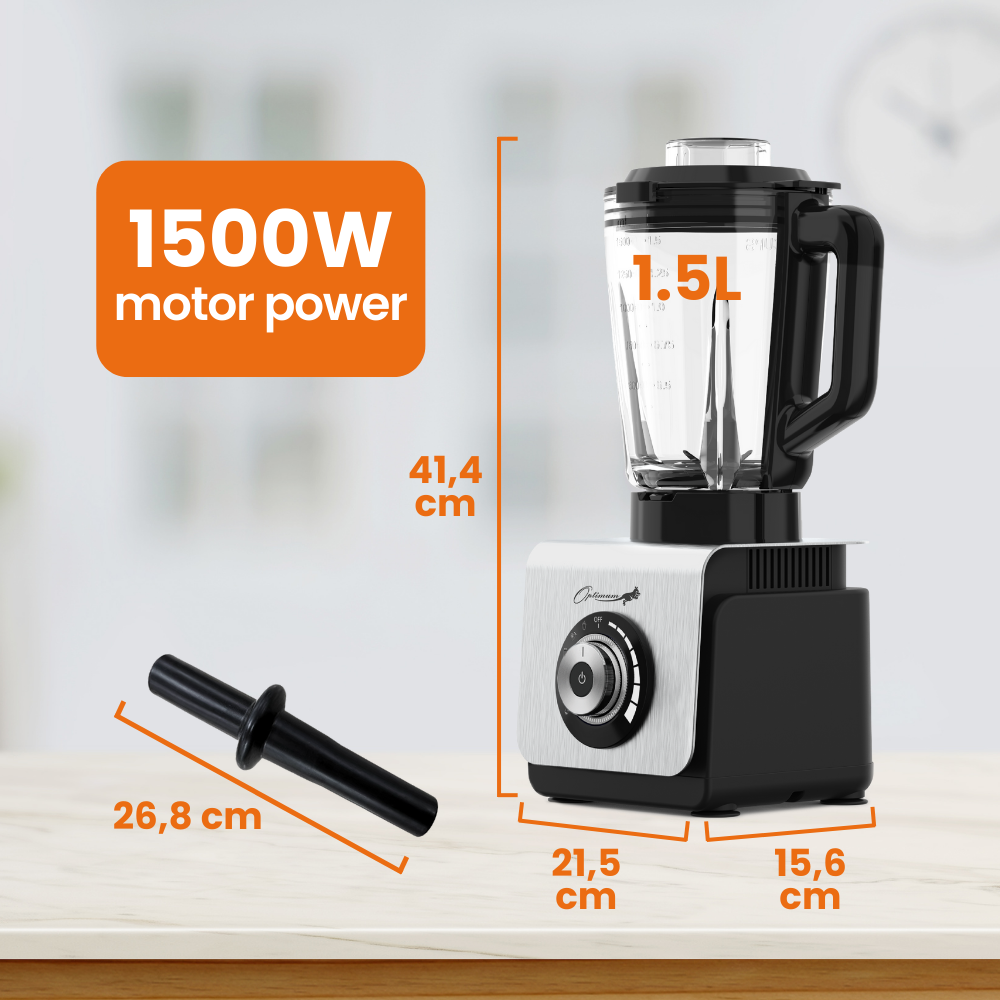 Explore new possibilities with the Optimum 9400 Essential Food Blender. Boasting 1,500 watts of raw power, this kitchen marvel is engineered to redefine the art of blending, grinding and food processing in the comfort of your home.