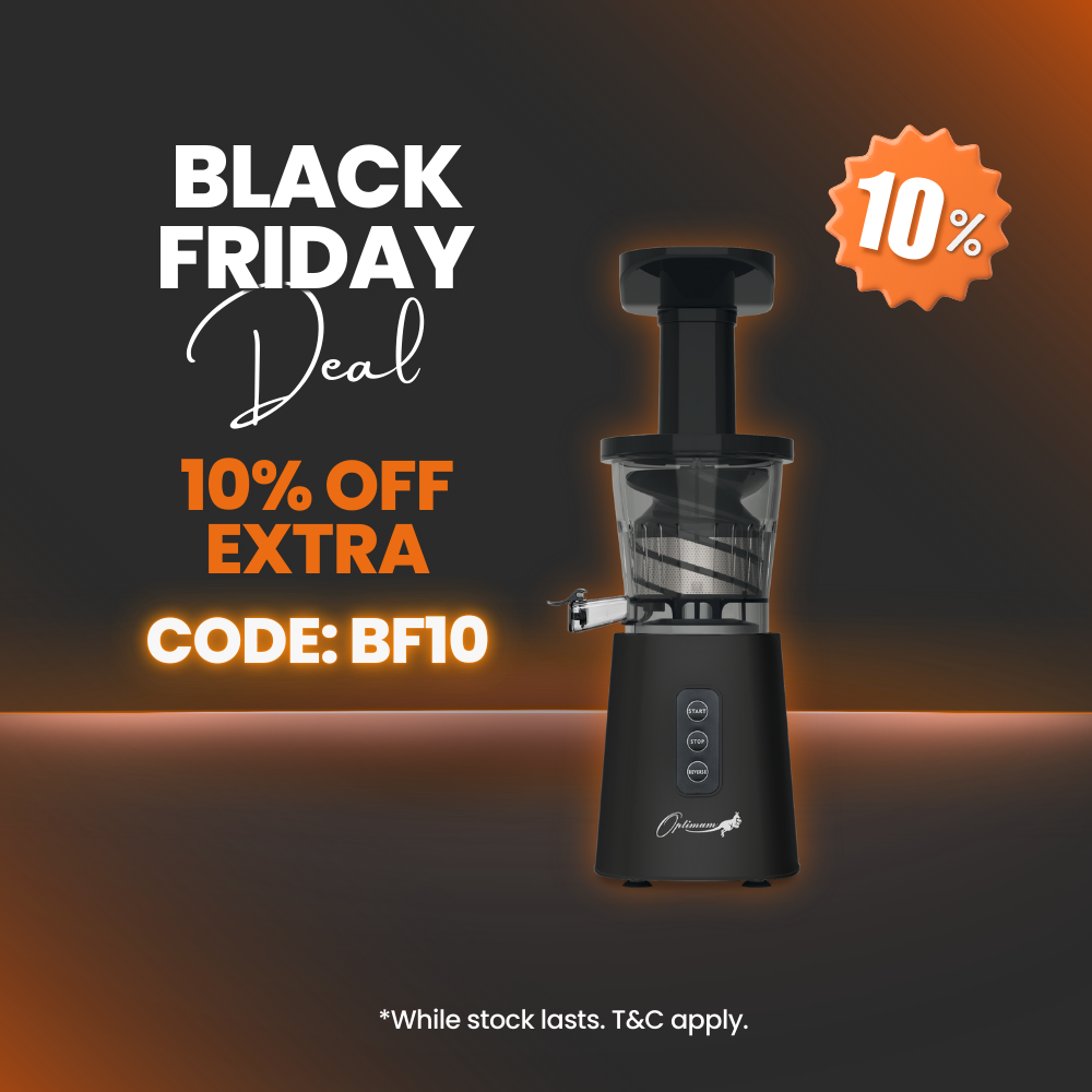 The Optimum 600M Slow Juicer is a cold press juicer that runs at a low 40-45 rpm (the slower the better), which means it can squeeze the maximum juice content out of your ingredients compared to traditional juicers.