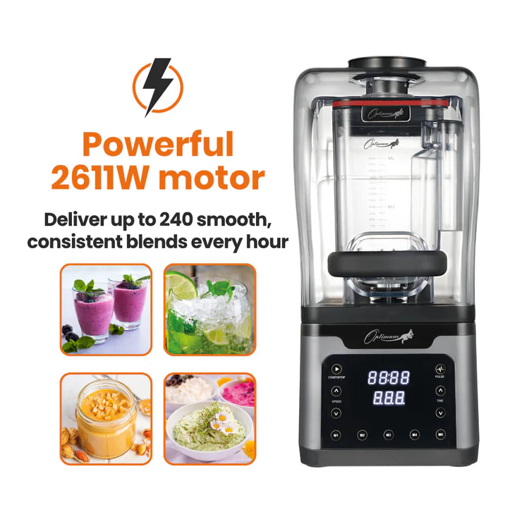 With its 3 hp motor, the Optimum can crush large quantities of ice in seconds - perfect for smoothies, slushies and ice cream.