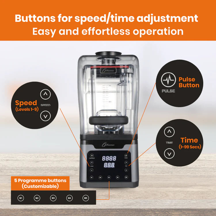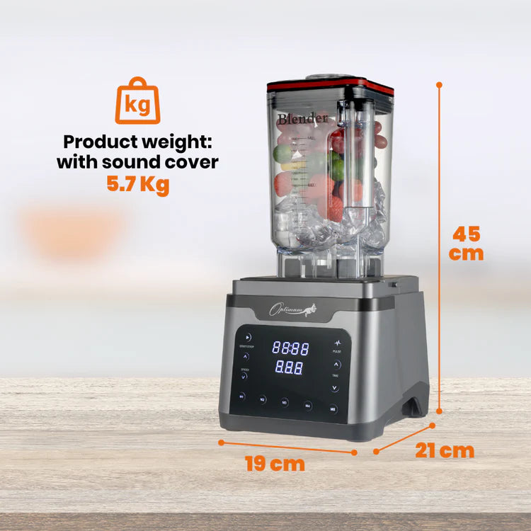 Recent tests have shown that the motor of the Optimum Vortex Blender is significantly quieter than that of its competitors. While it normally operates at just 85-90 decibels, you can reduce the volume to just 60 decibels with the optional soundproof cover. This makes the Optimum Vortex Blender officially the quietest blender in the industry - ideal for your family or workplace!